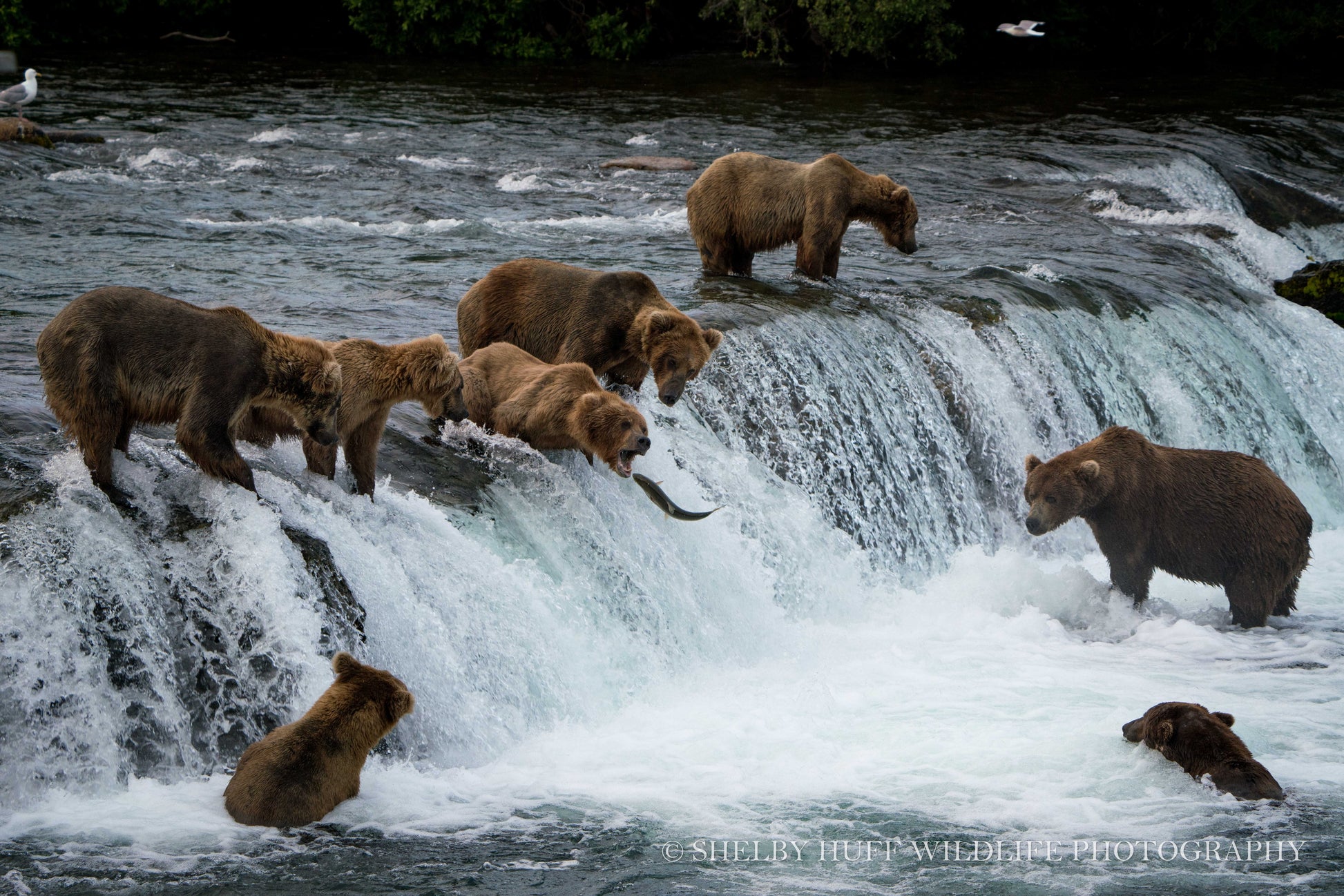 Brown bears fishing at Brooks Falls in Katmai National Park, Alaska.