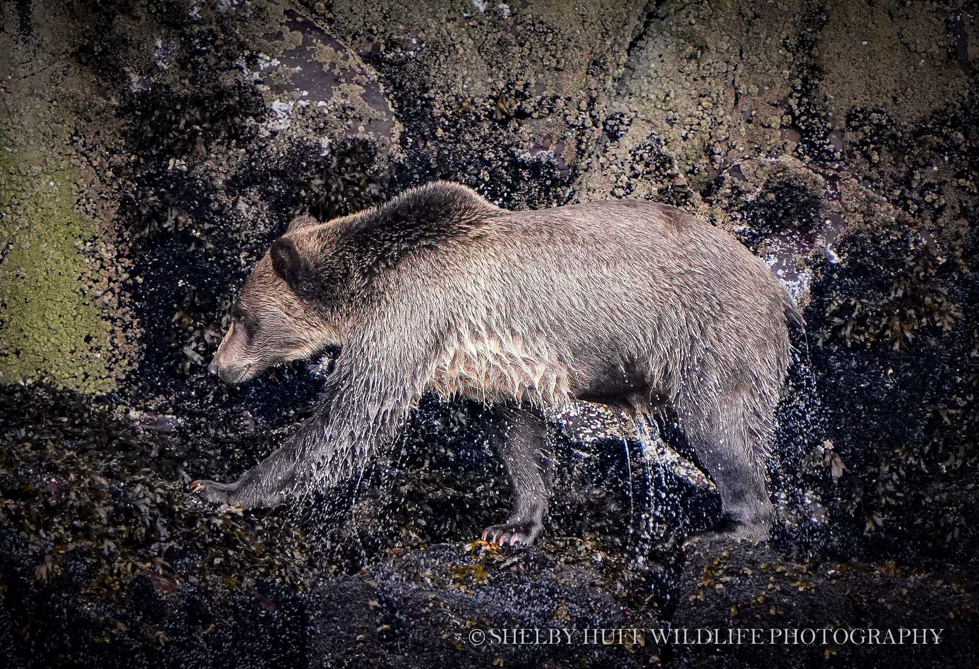 Brown bear fresh out of the water in coastal British Columbia.
