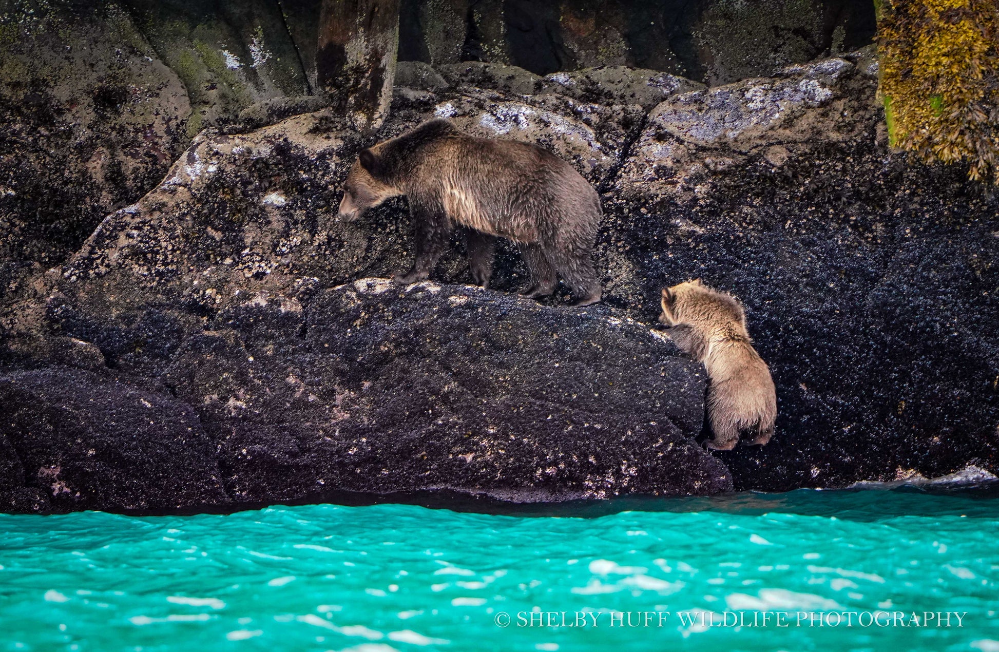 Brown bear sow and cub in coastal British Columbia.