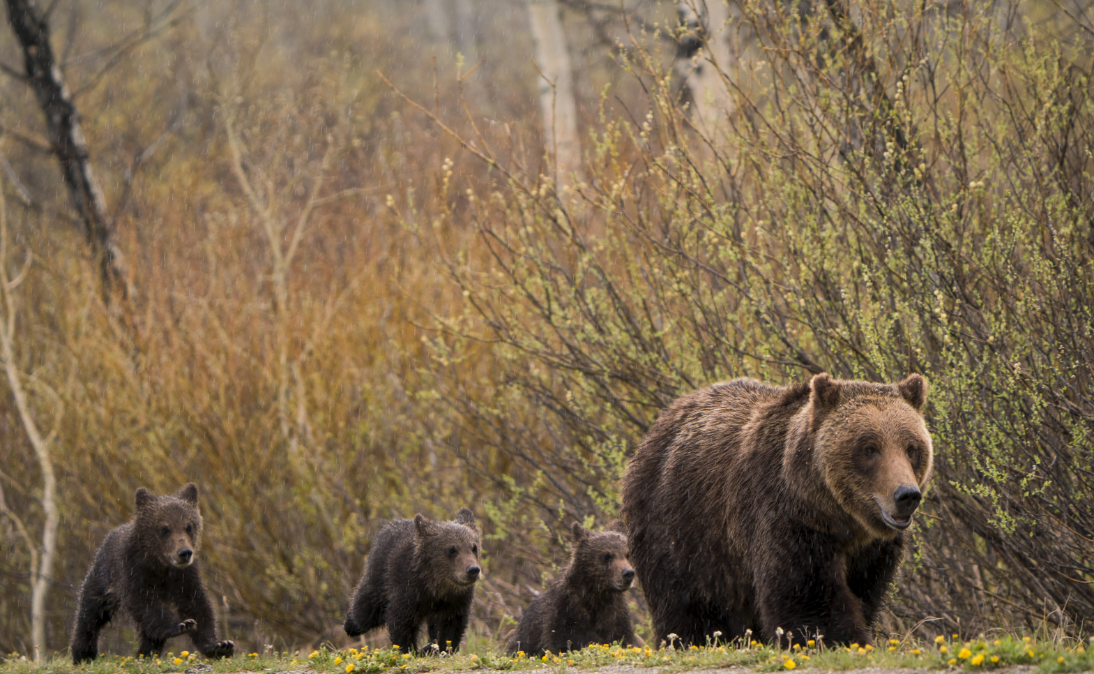 Grizzly 610 and three spring cubs in Grand Teton National Park, Wyoming.
