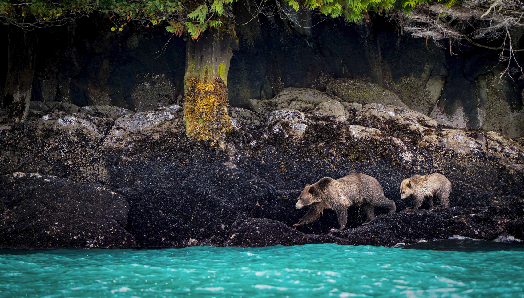 Brown bear sow and cub walking the shore of Knight Inlet in British Columbia. Top 30 finalist in National Wildlife Federation photo contest in 2022.